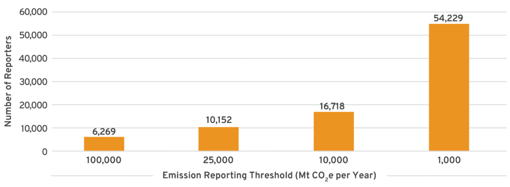 FIGURE 2: Number of Reporting Entities at Various Emission Thresholds