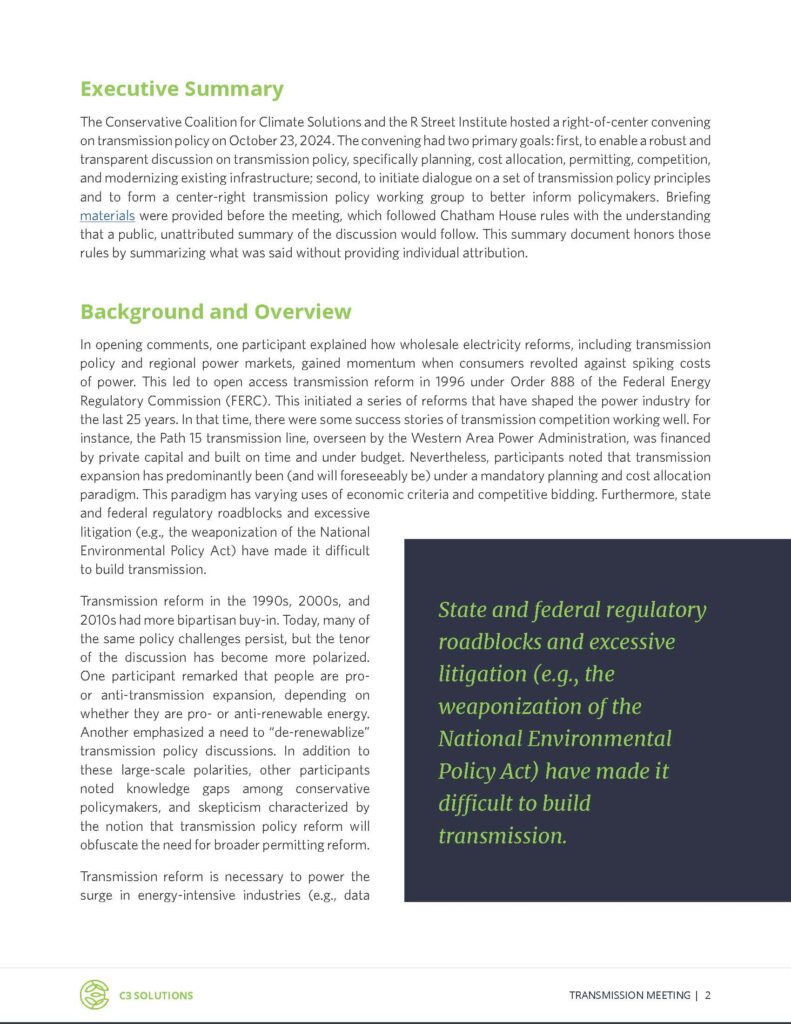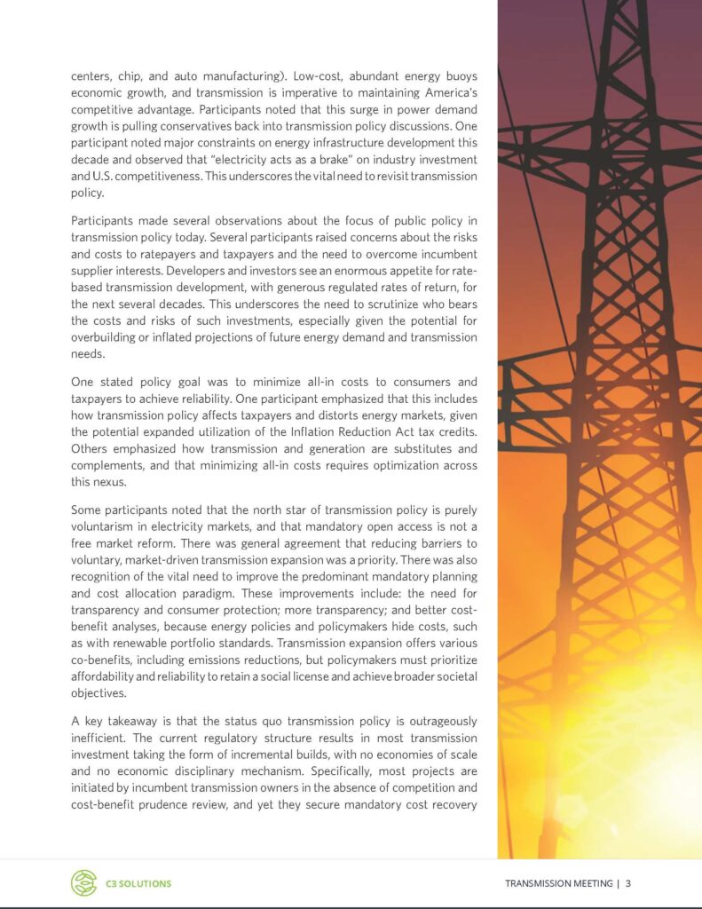 Presentations A Convening Summary: Center-Right Transmission Policy by Devin Hartman, Kent Chandler April 27, 2026 Print Share via Email: A%20Convening%20Summary:%20Center-Right%20Transmission%20Policy Share via Facebook: A%20Convening%20Summary:%20Center-Right%20Transmission%20Policy Share via Twitter: A%20Convening%20Summary:%20Center-Right%20Transmission%20Policy Share issues: Electricity Policy, Energy and Environment, Environmental Regulation, Federal Government Affairs, Permitting Reform